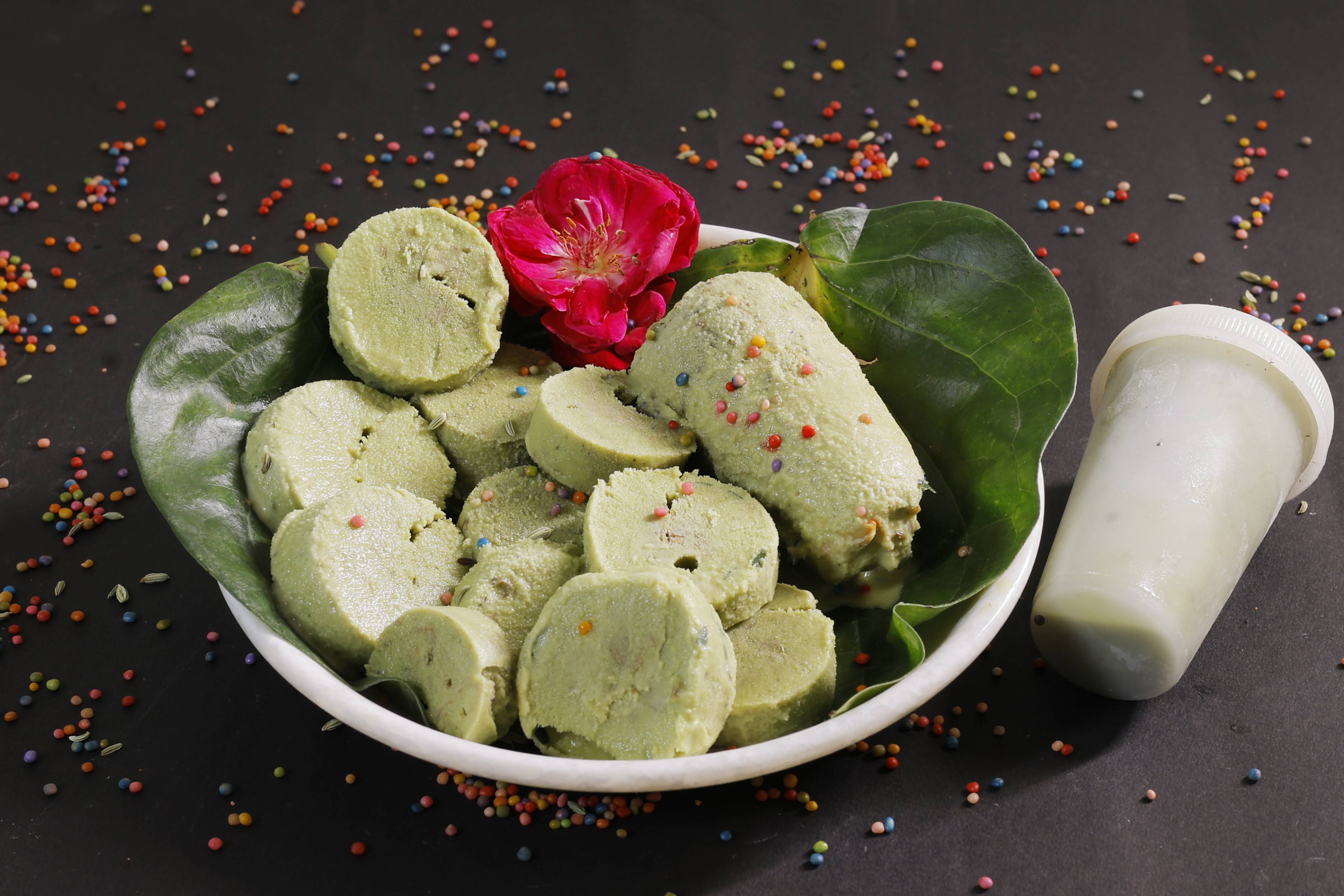 An indulgent fusion of tradition and taste! Our Paan Kulfi blends the refreshing essence of betel leaves with rich, creamy kulfi infused with gulkand (rose petal preserve), fennel seeds, and a hint of cardamom. Every bite delivers a cool, aromatic burst—just like a meetha paan, frozen into a deliciously creamy dessert. A true treat for paan lovers!